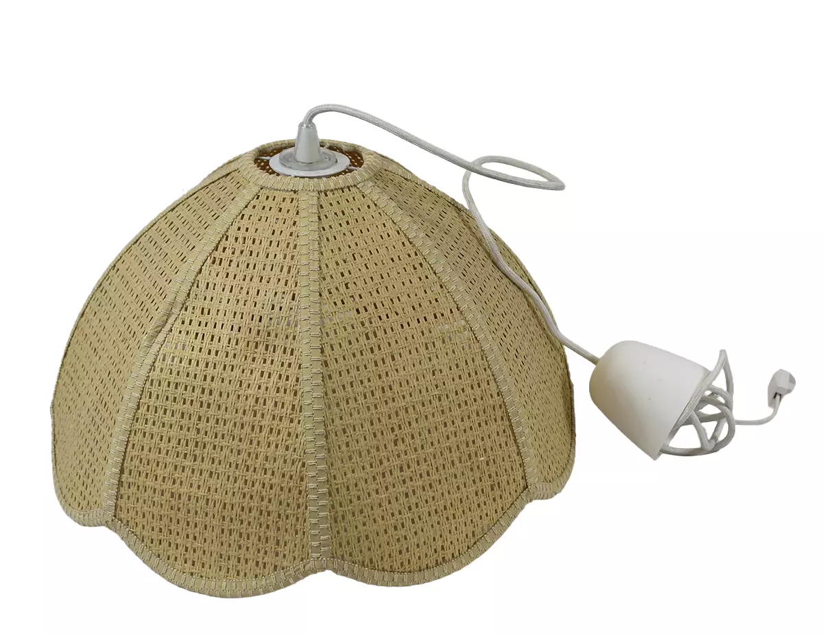 Rottinkinen kattovalaisin. Leveys: 46cm Korkeus: 34cm Johdon pituus: 166cm Lamppu: E 27 MAX 22W Sisältää pistokkeen, jonka voi liittää kattorasiaan.