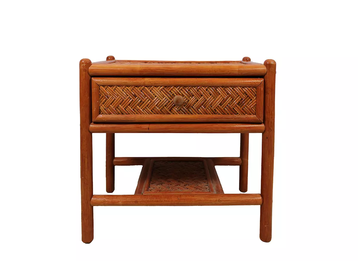 Rottinkinen yöpöytä. Leveys: 52cm Korkeus: 49cm Pituus: 34cm