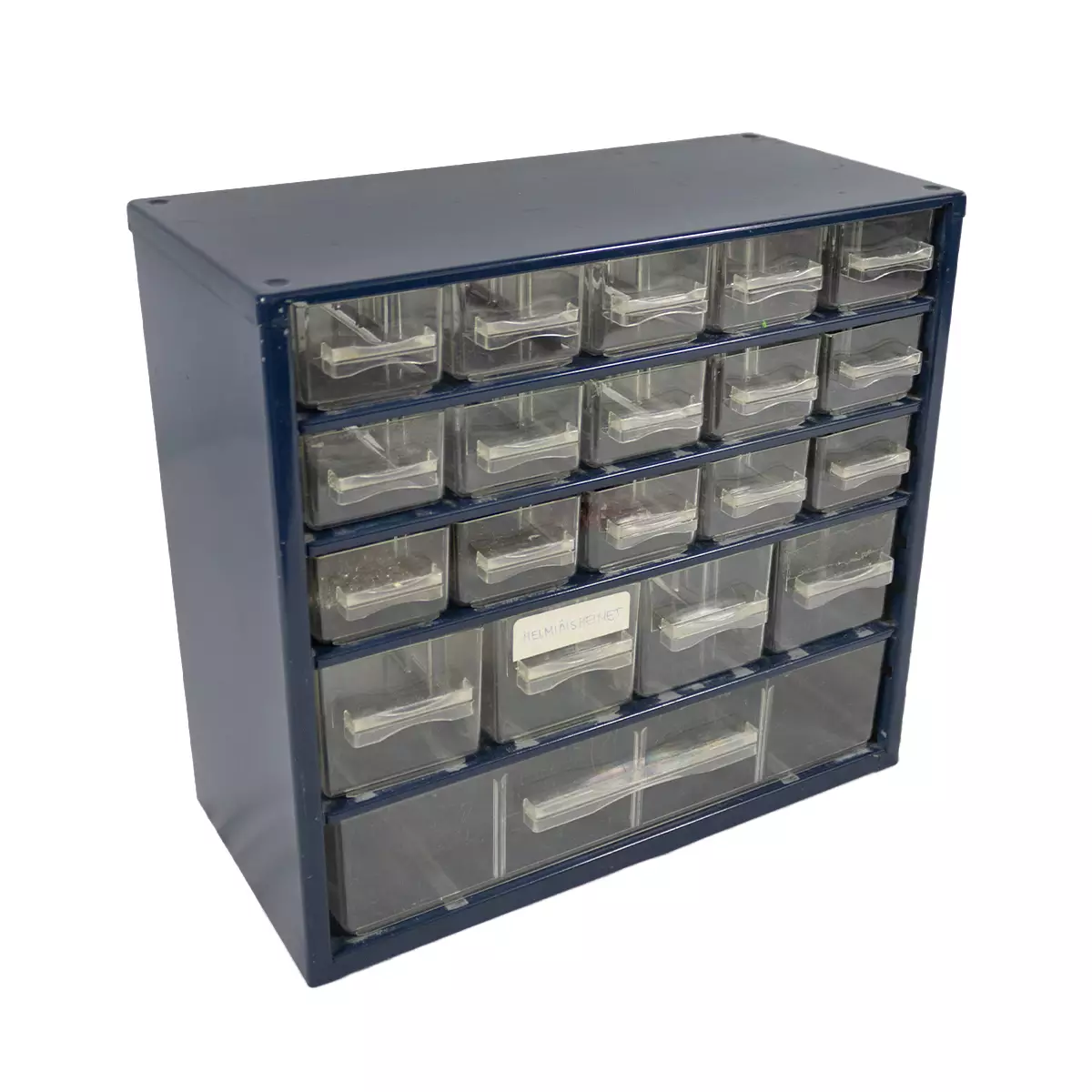Monilokeroinen säilytyslokerikko, joka on suunniteltu pienten osien, kuten ruuvien, helmien tai elektroniikkakomponenttien järjestämiseen. Korkeus 28 cm, leveys 30,5 cm, syvyys 14 cm.... Lue lisää