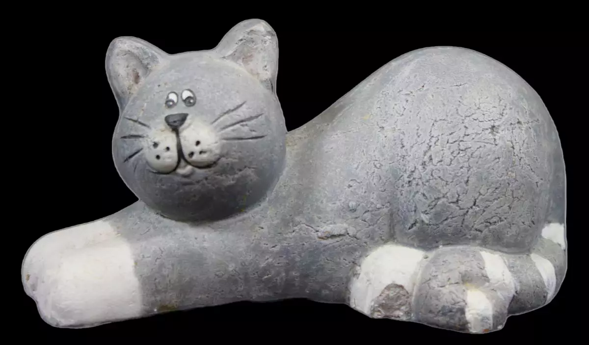 Iso, Savinen harmaa kissa Leveys 17cm korkeus 7cm Kunto: Hyvä, takatassusta on lohjennut palanen