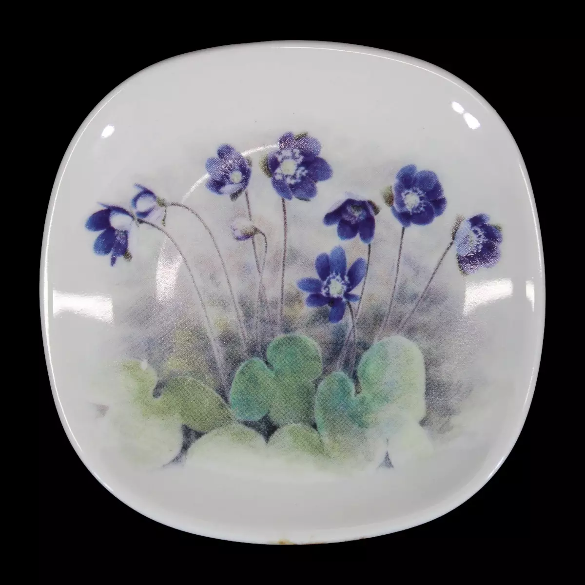 Arabian Sinivuokko keramiikkalautanen. Hieman tummentumaa reunassa.