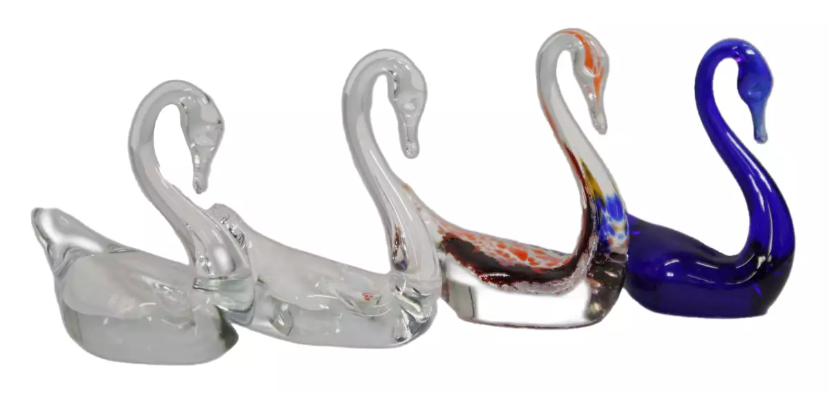 4kpl lasijoutsenta Oranssi, sininen, läpinäkyvä 2kpl