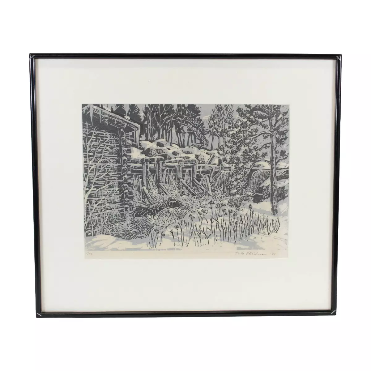 Sulo Väänäsen tekemä grafiikkateos, vedos 1/50. Mustat puukehykset.