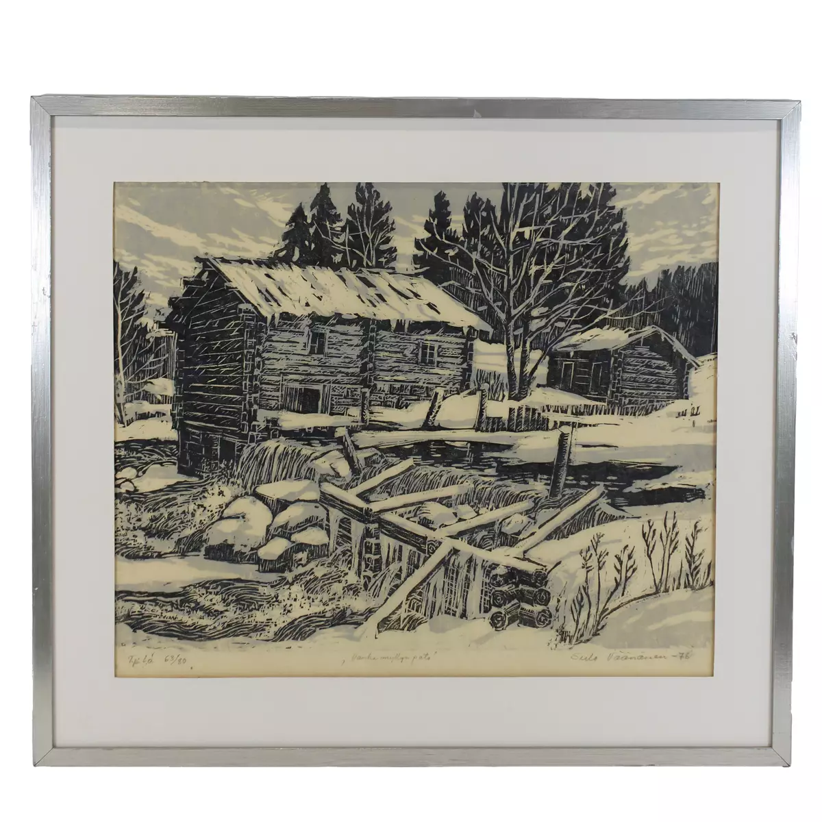Sulo Väänänen taulu, vanha myllyn pato Harmaat kehykset mitat kehyksineen 58x51cm