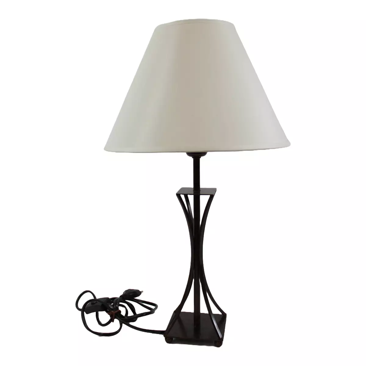 Truebell Finland Oy:n valmistama pöytävalaisin. Jalka metallia. Väri: ruskea/valkoinen Mitat: 55cm x 28cm Johdon pituus: 2m Valaisin tarkastettu, toimii.