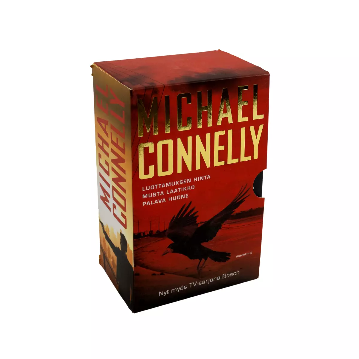 Michael Connellyn 3 kirjaa jotka on koottu yhdeksi paketiksi. Kirjat: Musta Laatikko Luottamuksen hinta Palava huone