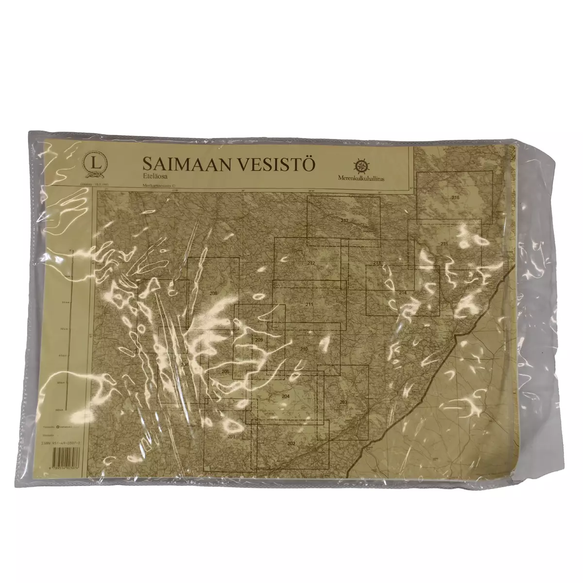 Saimaan vesistö eteläosa -merikartasto Julkaisija: Merenkulkuhallitus Korkeus: 52,5 cm Leveys: 60 cm Muovitaskussa.