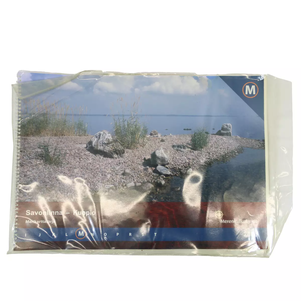 Savonlinna-Kuopio merikarttasarja, 2006 Julkaisija: Merenkulkulaitos Korkeus: 42,5 cm Leveys: 60 cm Ylälaidasta vihkon kiinnitys irronnut, suojakalvossa repeämiä.