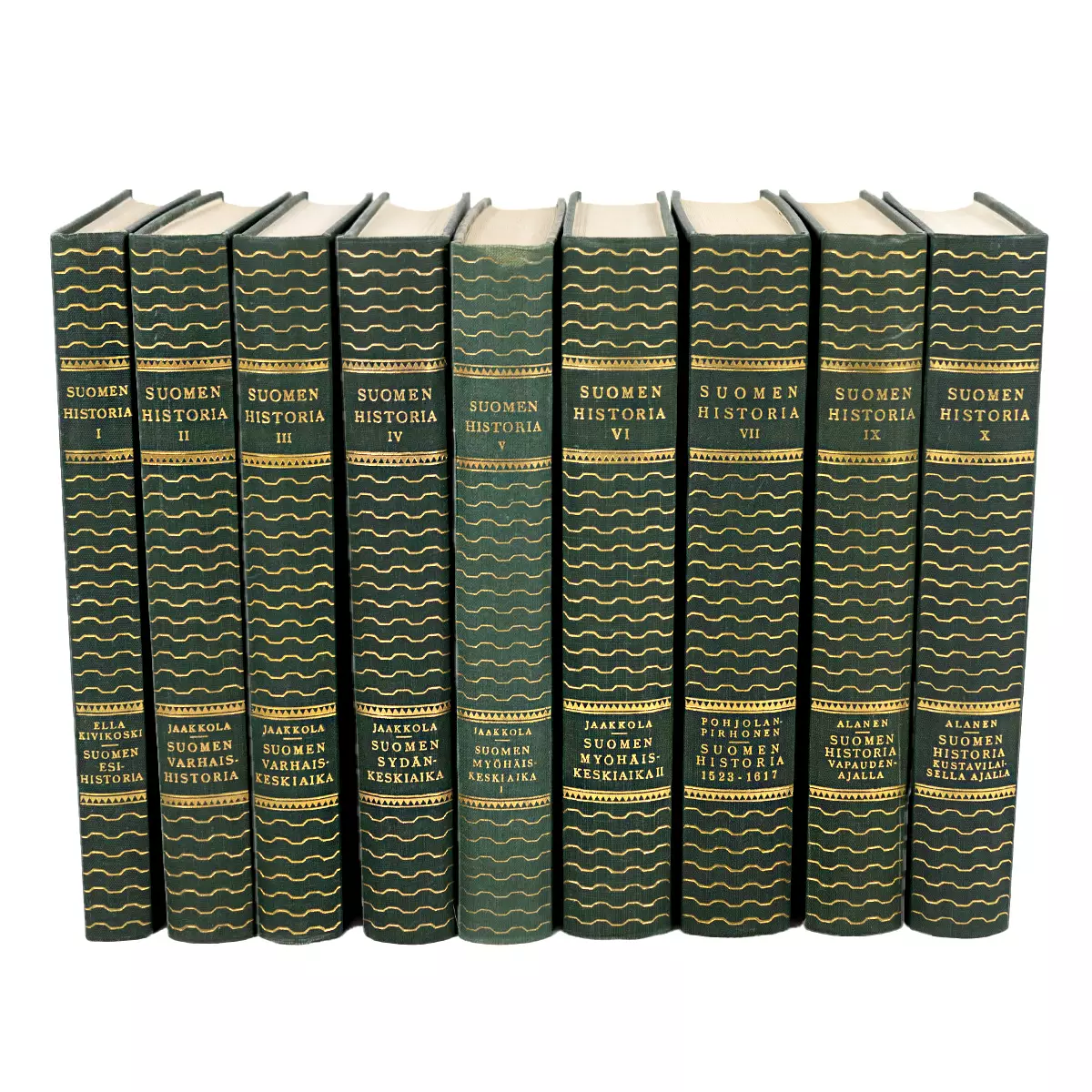 Suomen Historia -kirjat 1-7 ja 9-10 Professori Jalmari Jaakkolan toimittama, WSOY:n kustantama Kirjat ilmestyneet 1930-1960 -luvulla Ensimmäisessä kirjassa paljon muistiinpanoja ja alleviivauksia... Lue lisää