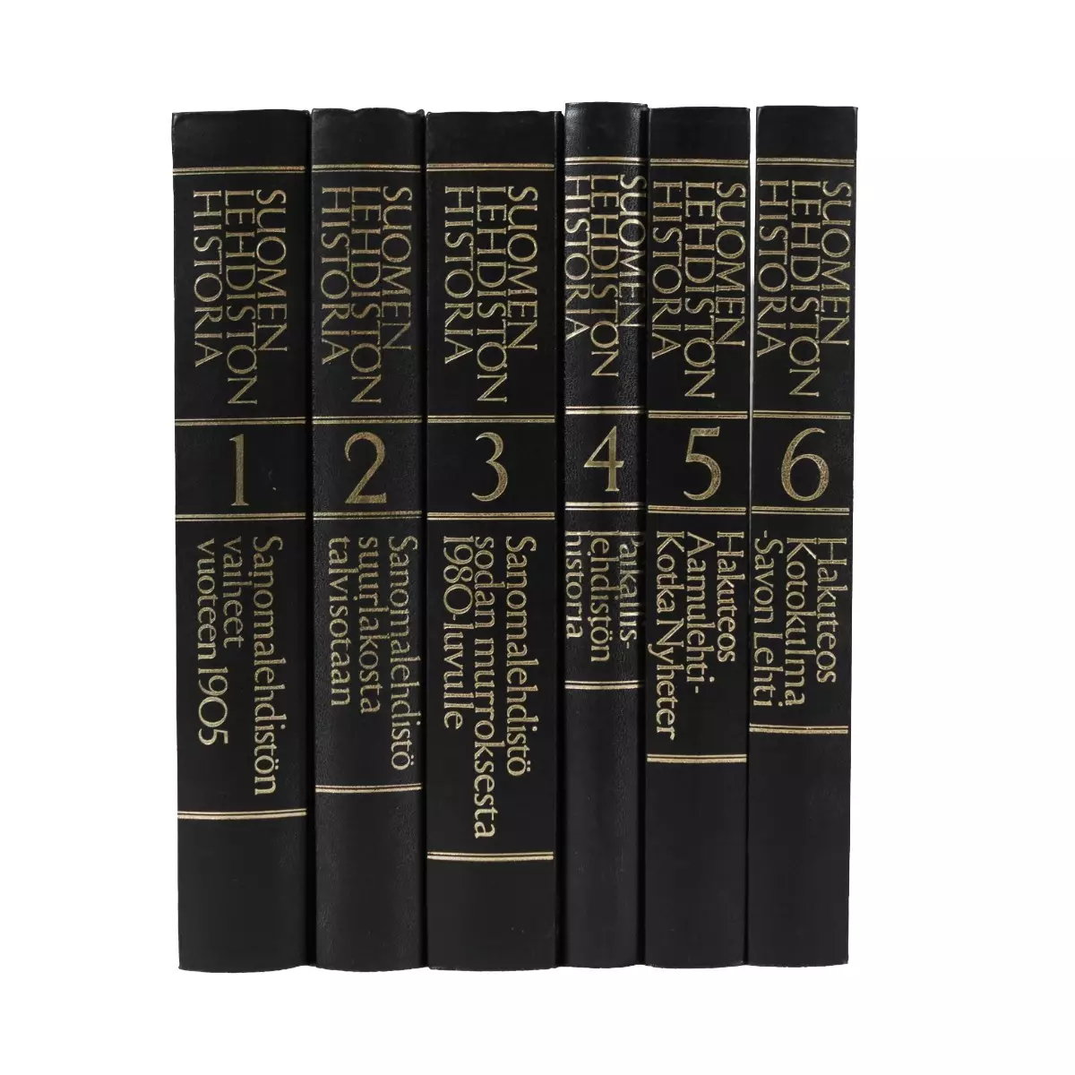 Suomen lehdistö historia 1-6 perushyvä kunto. Osien 2 ja 4 selkämyksissä painaumaa.