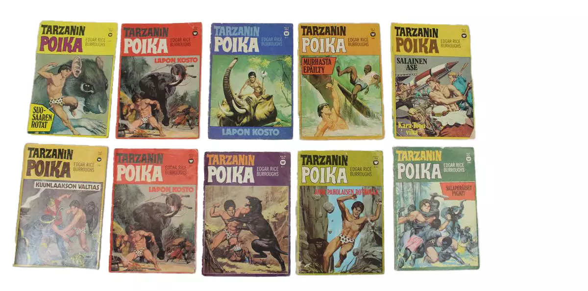 Tarzanin poika 1974-1975 10kpl Sisältää 10kpl sarjakuvalehtiä vuosilta 1974 ja 1975.