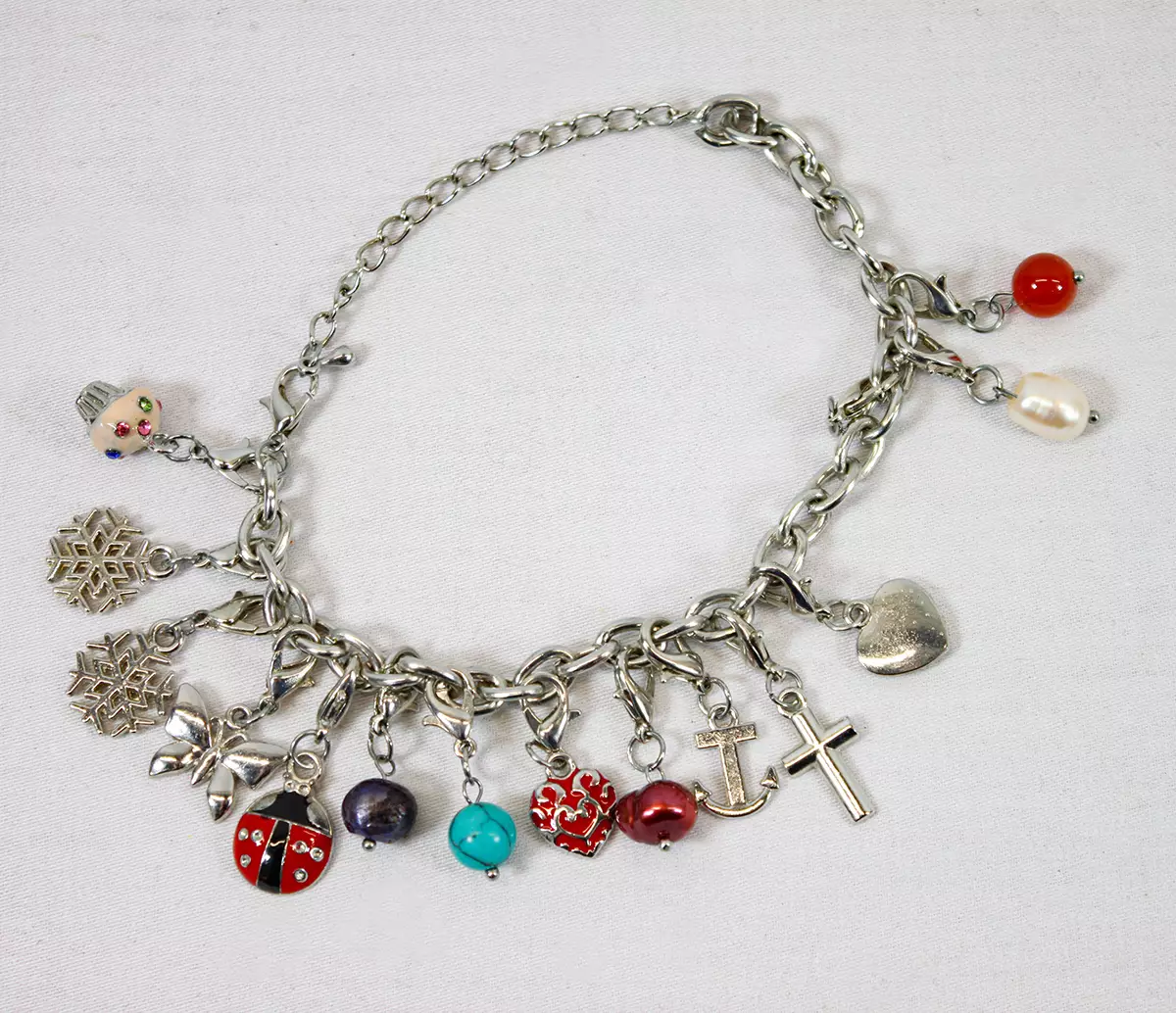 Argento rannekoru, sis. 13 riipusta. Pituus: 24cm