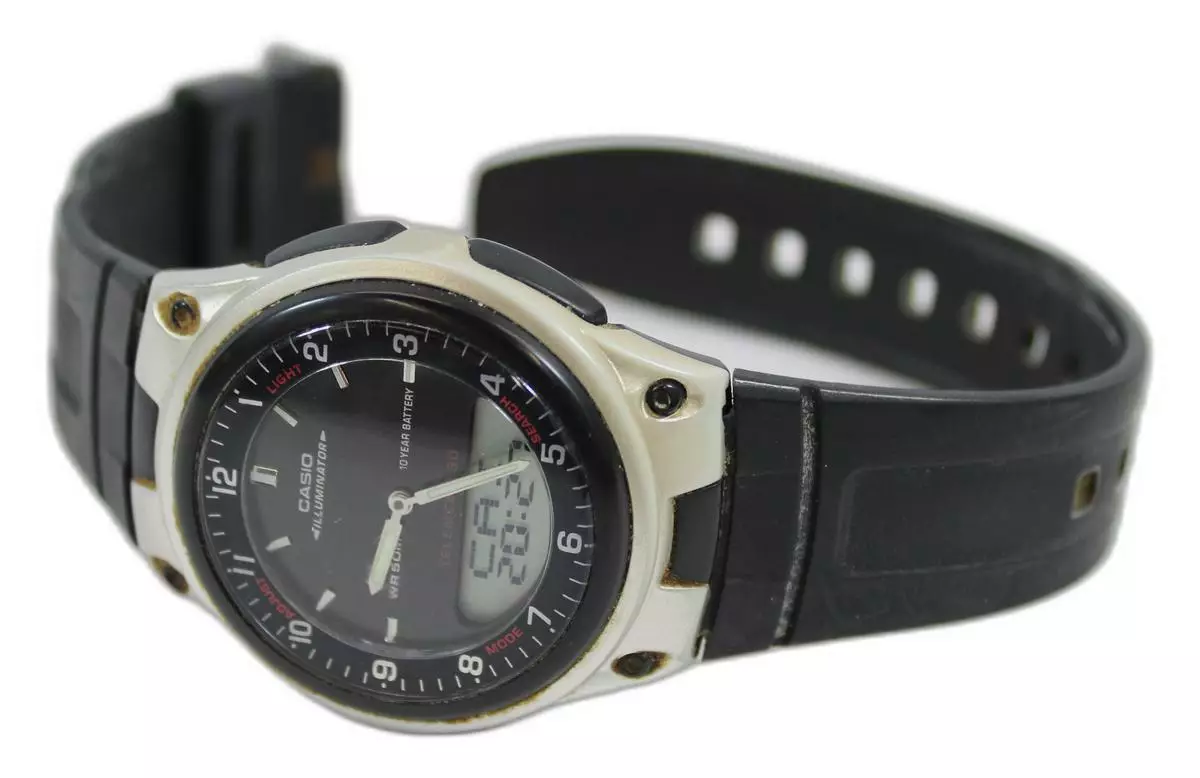 Casio rannekello Vaatii puhdistusta, hihna poikki Ei varmuutta toimiiko Ranne n. 27 cm säädettävissä.