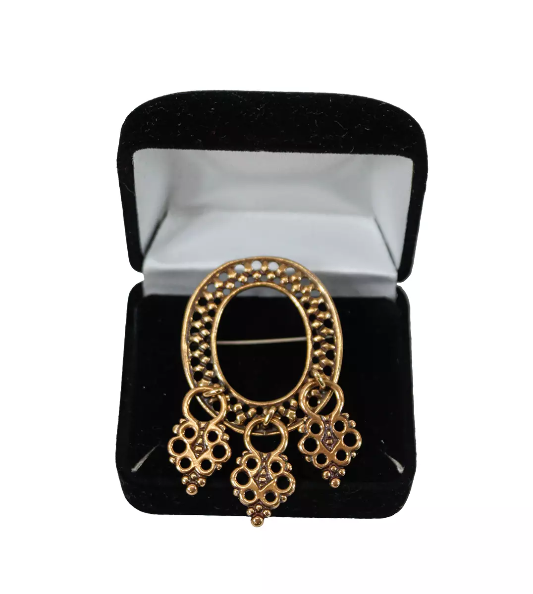 Kalevalan pronssinen lapin rintakoru 1960 -luvulta. Korkeus: 5,3cm Leveys: 3cm