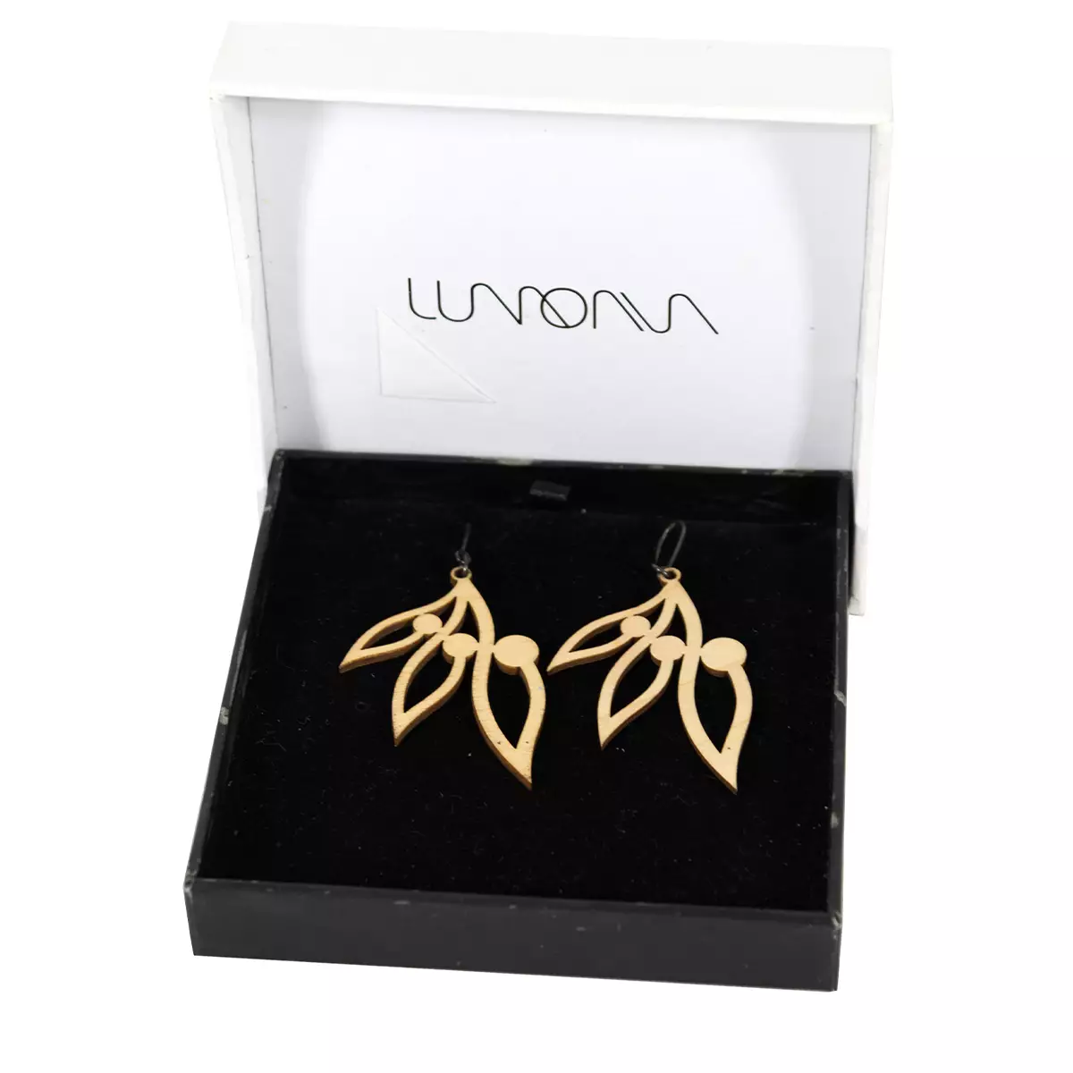 Lumoavan Pihla Usva korvakorut ovat valmistettu Kuopiossa ja ne ovat suomalaista käsityötä. Valmistaja: Lumoava. Mitat: Pituus - n.7cm. Väri: Puunvärinen. Materiaali: Vaneri/Puu... Lue lisää