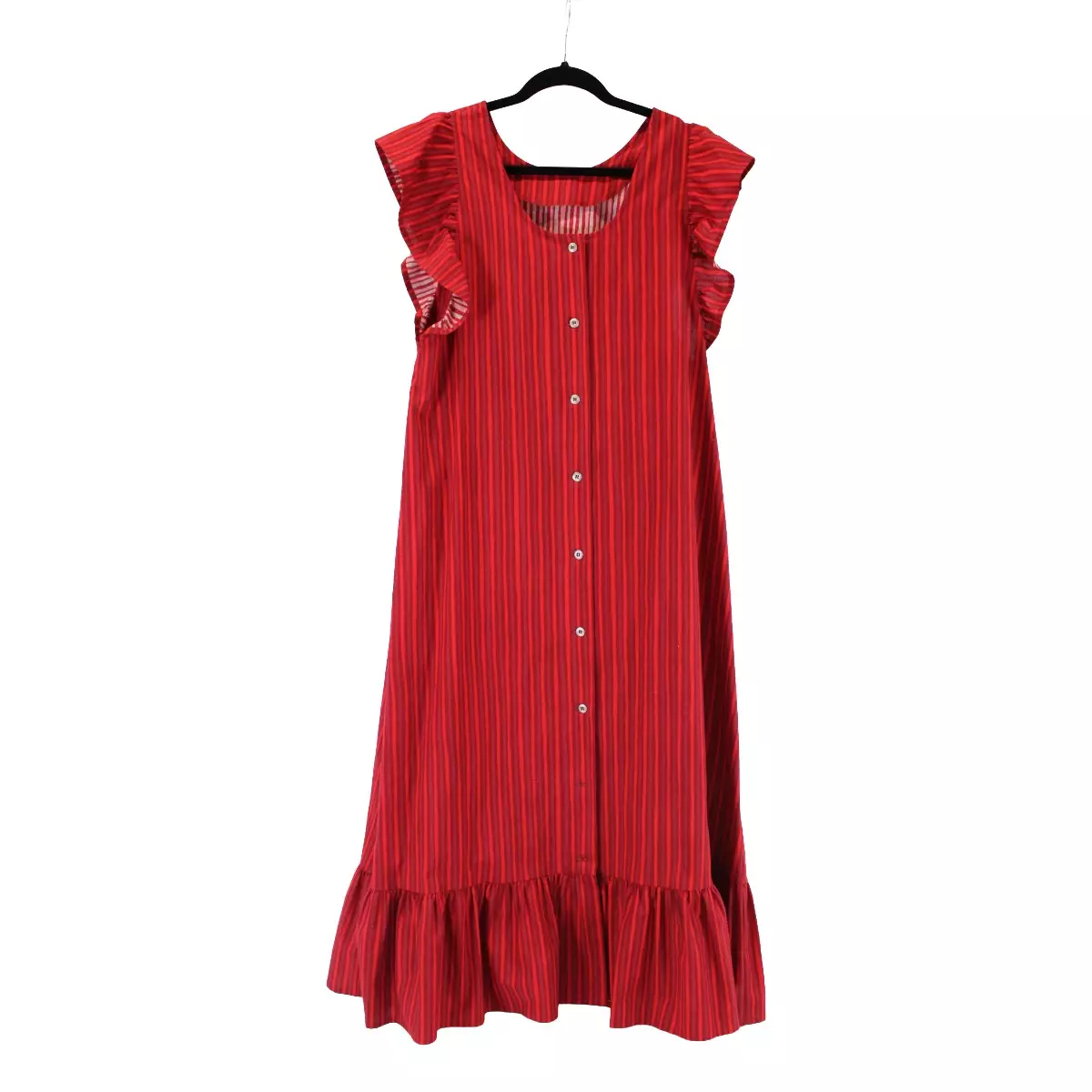 Suunnittelija: Marimekko Koko: M, olka-helma pituus: 125cm, kainalo-kainalo: 50cm Materiaali: 100% Puuvilla Kunto: Erinomainen/ uusi Väri: Punainen