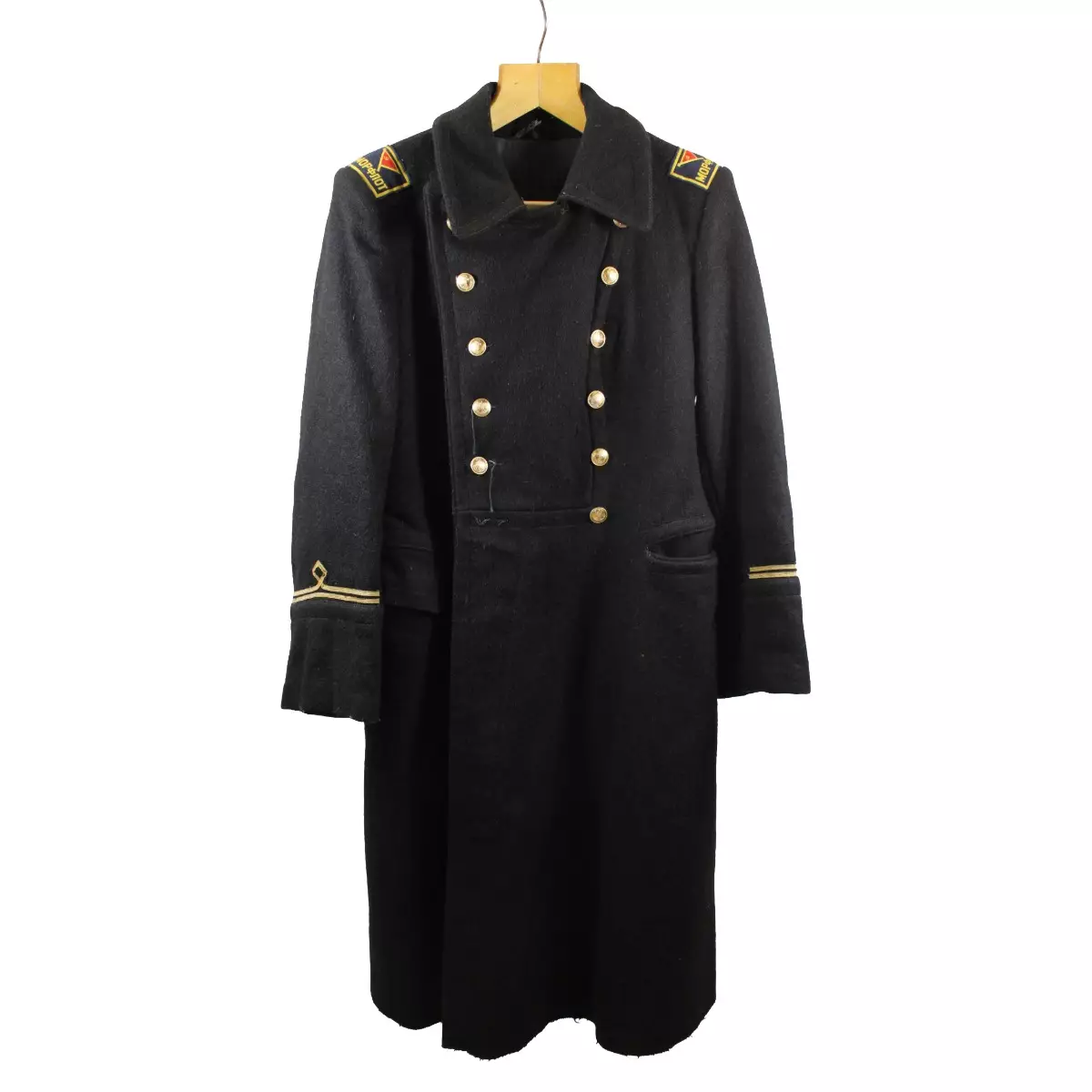 Neuvostoliiton kauppalaivaston takki Mitat: Olka-helma: 118 cm Kainalosta kainaloon: n. 54 cm Sisäpuolessa vuoressa reikä, ripustuslenkki poikki, yksi nappi puuttuu. Muuten hyväkuntoinen.... Lue lisää