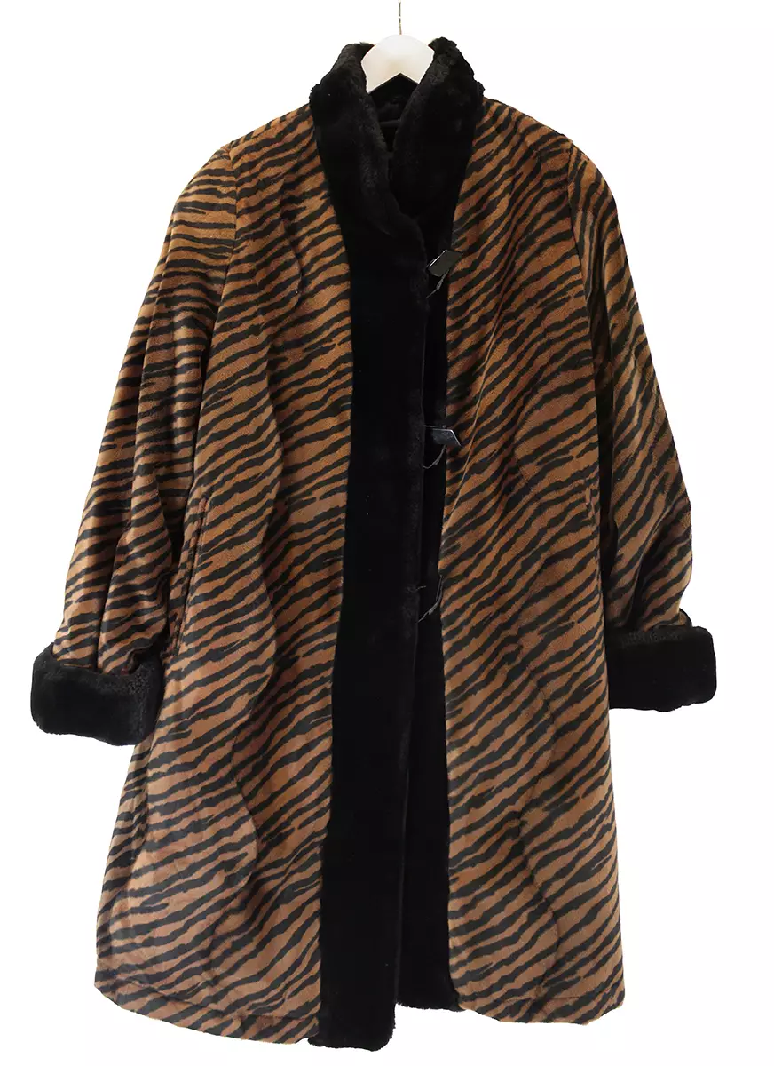 Tiikerikuosinen talvitakki, ei merkkiä Kainalo-kainalo: 59cm Olka-helma: 94cm Koko arviolta n. L