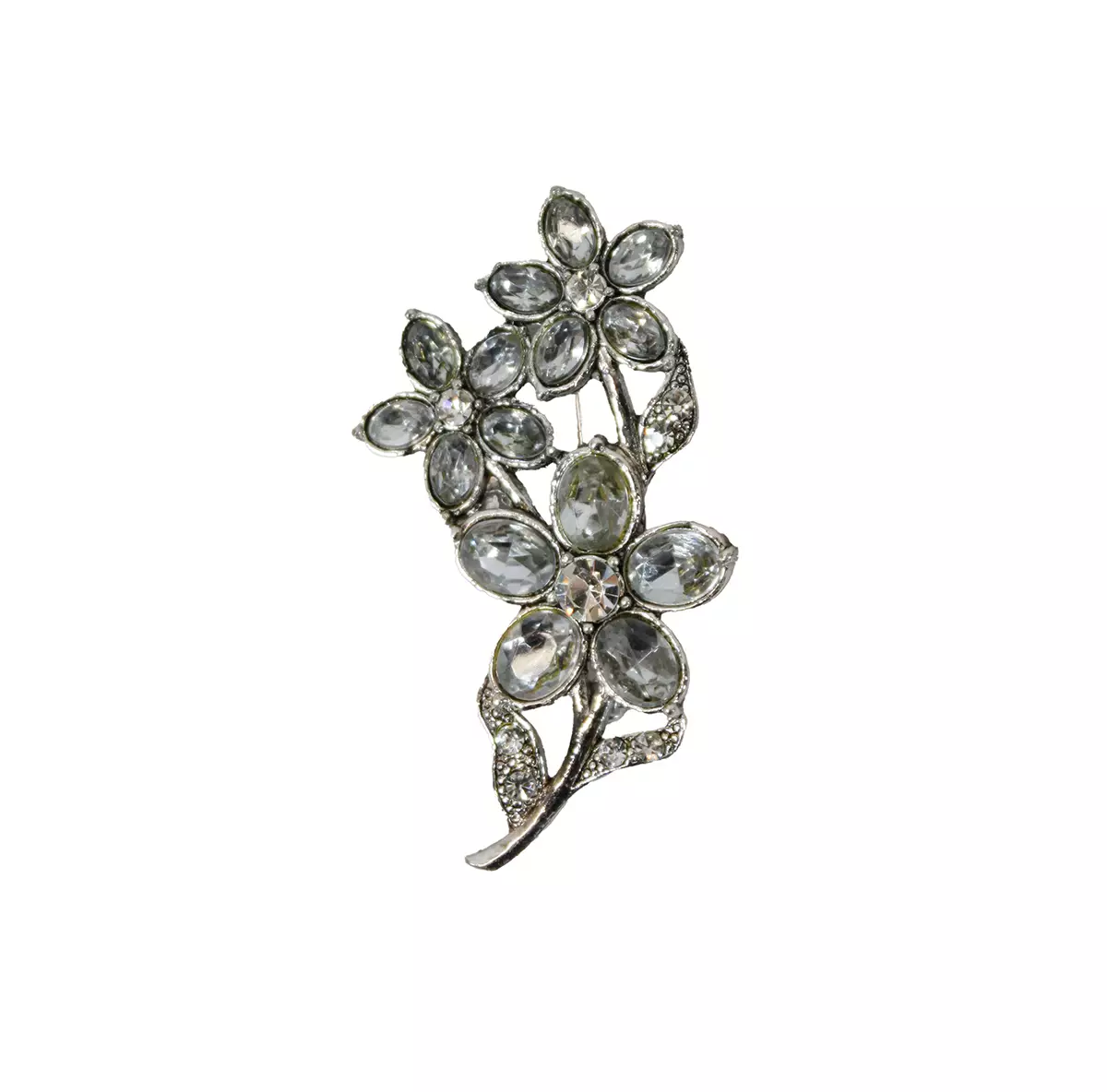 Timanttinen rintaneula. Valmistettu metallista. Väri: hopea Pituus: 5,7cm