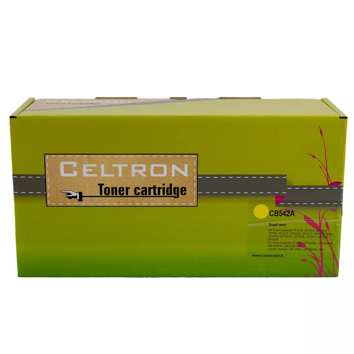Celtron värikasetti. Väri keltainen. Mallinumero CB542A.