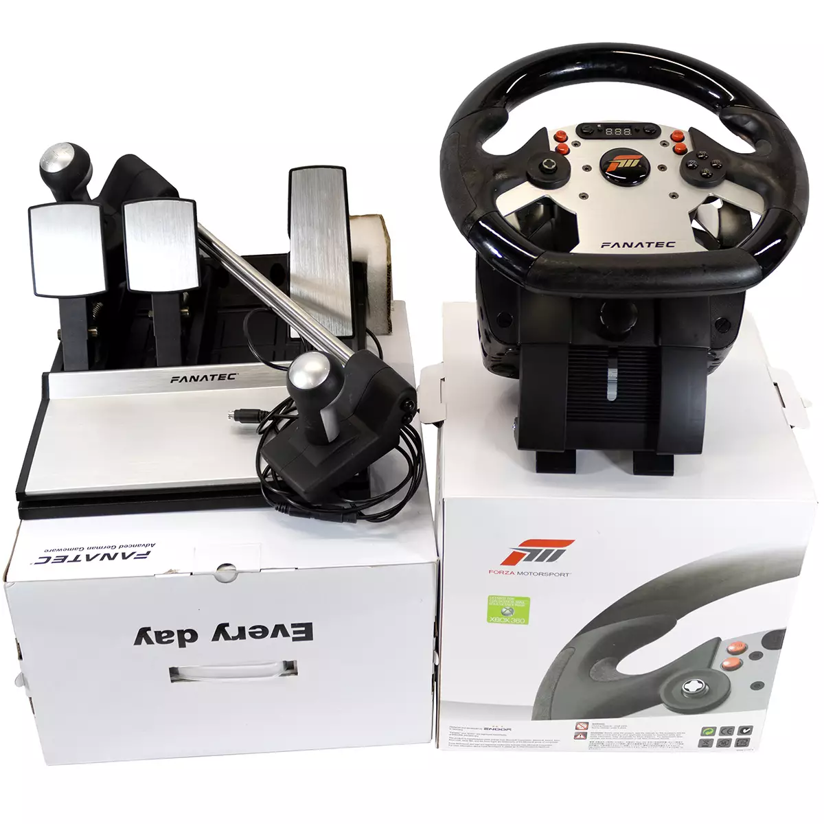 Fanatec For2a motorsport CSR racing wheel XBOX/PC Kokonaisuuteen kuuluu ratti, polkimet, sifteri ja käsijarru Ratin pinnassa tahmaisuutta, tyyppivika joka tulee ajan saatossa... Lue lisää
