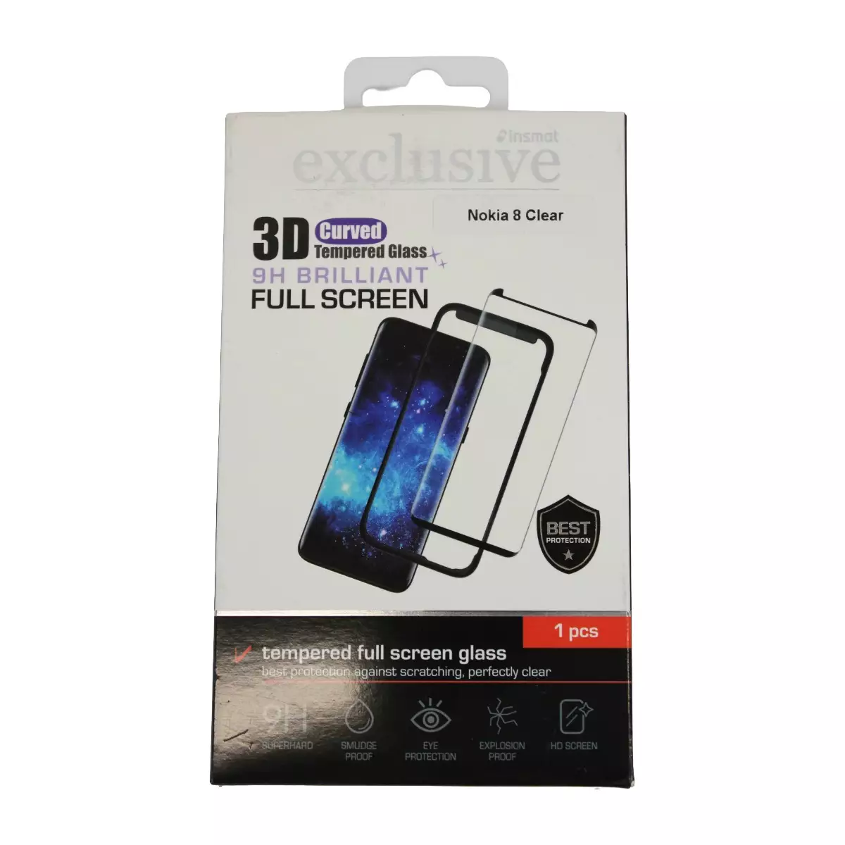 Valmistaja: Insmat exclusive Yhteensopivuus: Nokia 8, Black Materiaali: 3D-kaareva panssarilasi, 9H kovuus