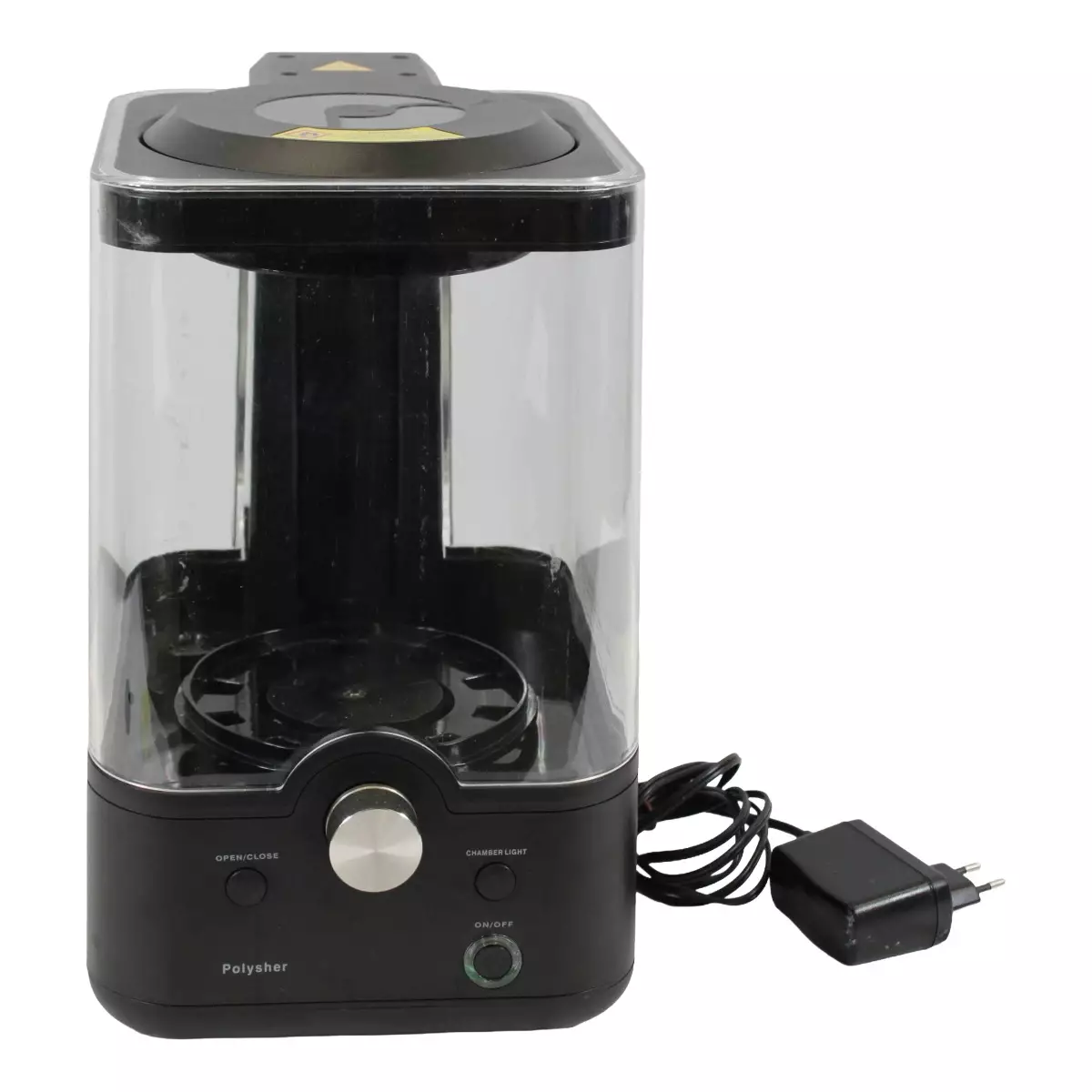Polysher on työpöydän jälkikäsittelylaite, joka tasoittaa saumattomasti PolySmooth- ja PolyCast-filamenteilla tehtyjä 3D-tulostettuja malleja. Polymakerin Layer-Free-tekniikkaa hyödyntävä laite käyttää hienoa isopropyylialkoholin (IPA) tai etanolin sumua liuottamaan pintakerrosten juonteita varovasti, jolloin tuloksena on kiiltävä, ammattilaistasoinen viimeistely.