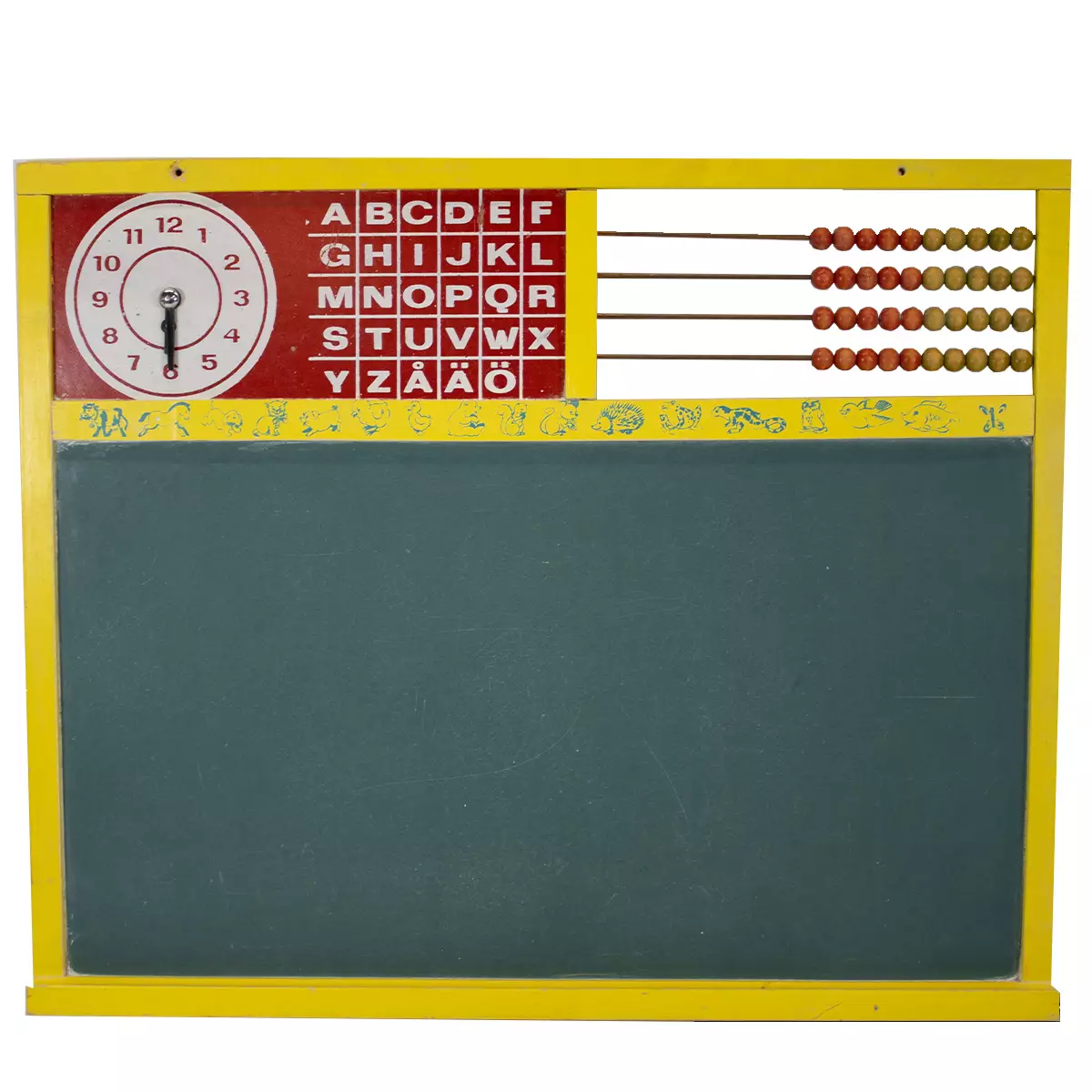 Retrotaulu jossa - Liitutaulu - Laskutaulu - Kello - Kirjaimet koko 63x52