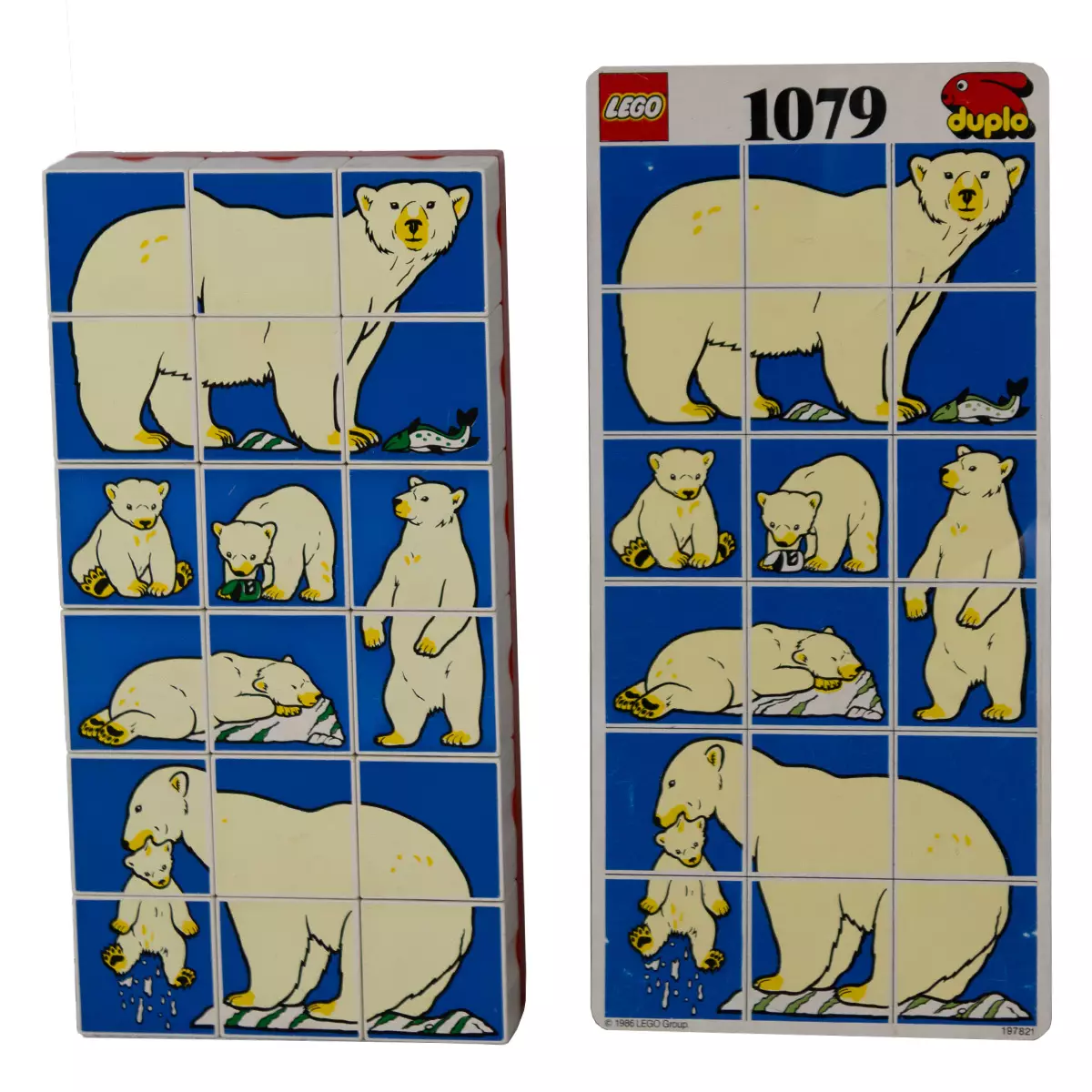 Tämä paperinen mallikortti (Paper Duplo Mosaic Picture Puzzle Key Card, osanumero 1079polarbear) on osa vuonna 1987 julkaistua harvinaista LEGO Dacta 1079 Animal Mosaic Puzzle -settiä