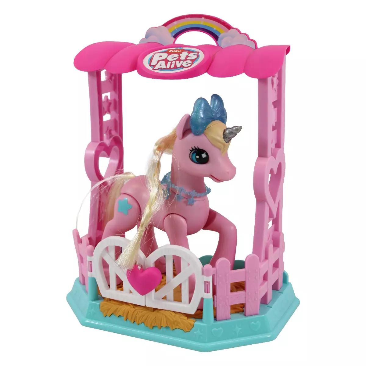 Zuru Pets Alive, My Magical Unicorn Interaktiivinen poni ja talli. Voi syöttää. Paristot: 3 x AA, eivät sisälly mukaan. Väri: pinkki