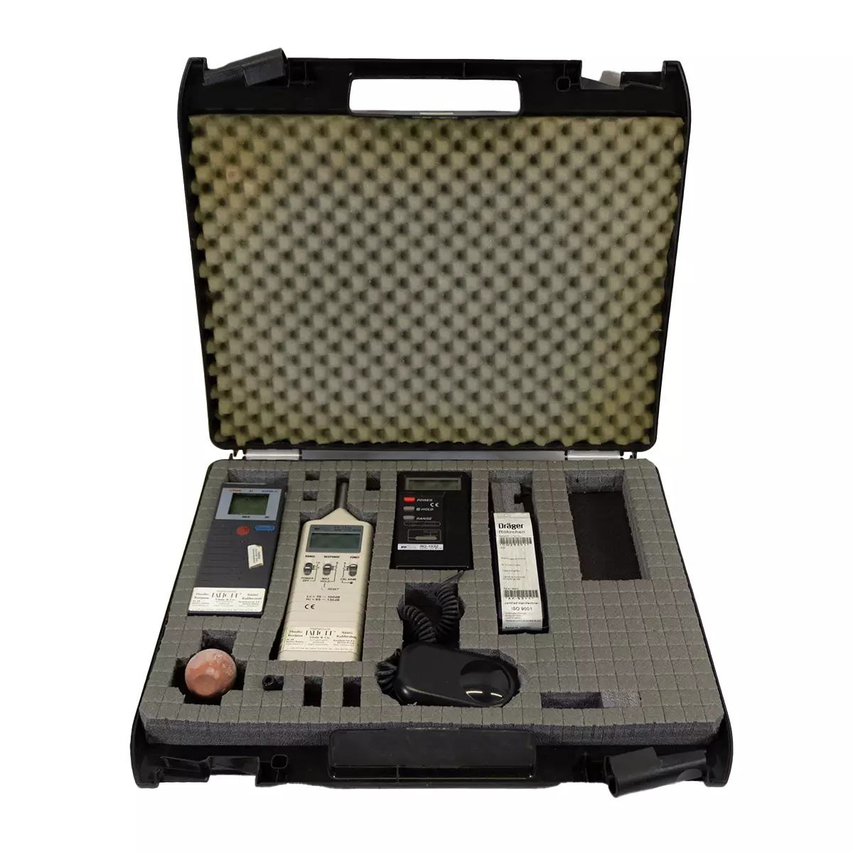 Salkussa olevat laitteet: -Dräger Röhrchen savutankoja -Roline Ro-1332 valoisuusmittari -Roline Ro-1350 äänentasomittari -Rotronic A1 Hygromer suhteellinen kosteus ja lämpötilamittari +... Lue lisää