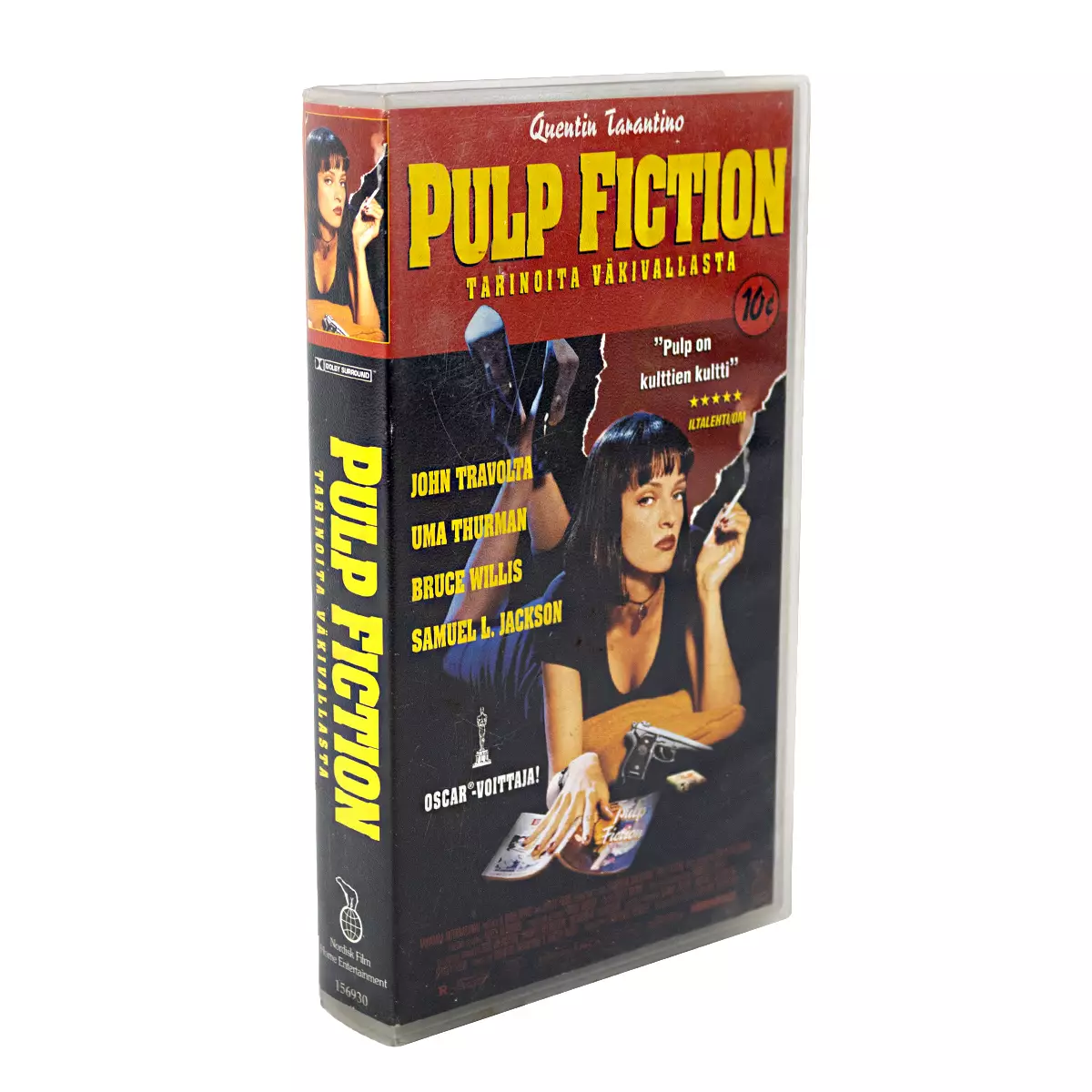 Pulp Fiction - Tarinoita väkivallasta, VHS-kasetti Vuosi: 1994 Genre: Toimintatrilleri Kesto: 2 h. 28 min. Tekstitys: Suomi Puhe: Englanti Ikäraja: K16 HUOM: Pieni palanen muovi osaa VHS-kasetin... Lue lisää