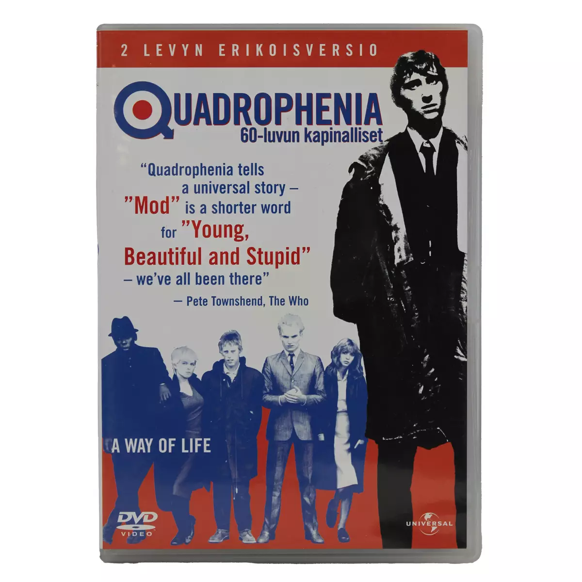 Quadrophenia, 60-luvun kapinalliset Perustuu löyhästi The Who-yhtyeen samannimiseen albumiin. Kahden levyn erikoisversio. Ohjaaja: Franc Roddam Kieli: englanti Tekstitykset: suomi, ruotsi, norja... Lue lisää
